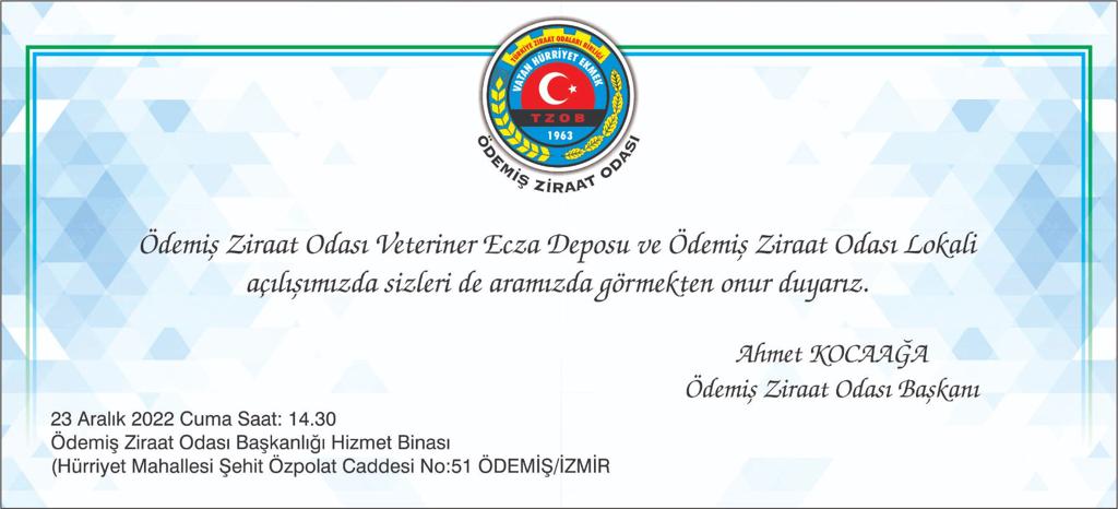 - 23 ARALIK 2022 TARİHİNDE VETERİNER ECZA DEPOMUZ VE LOKALİMİZİN AÇILIŞI GERÇEKLEŞTİRİLECEKTİR.